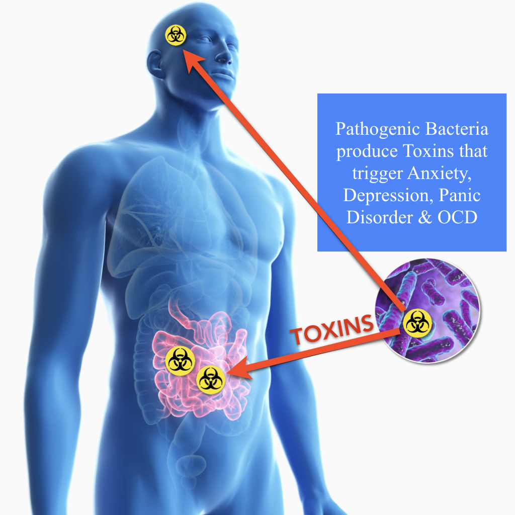 The study’s findings provide strong evidence that pathogenic bacteria are directly linked to symptoms of anxiety, depression, panic disorder and OCD.