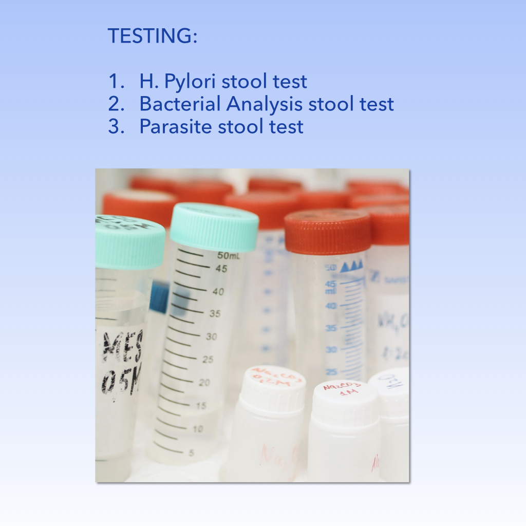 Primary: presence of pathogenic gut bacteria. Secondary: symptom reduction, residual symptoms, response to detoxification remedies.